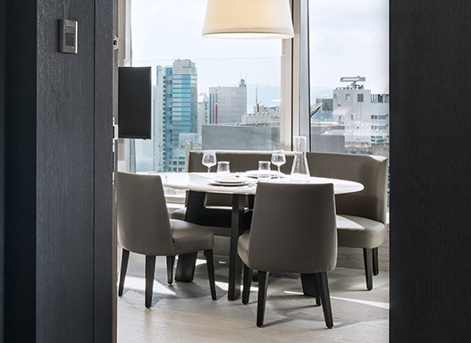 As envisaged by interior designer Norman Chan, each of the suites features soothing modern interiors in a neutral palette that is complemented by an abundance of natural light from the large windows.